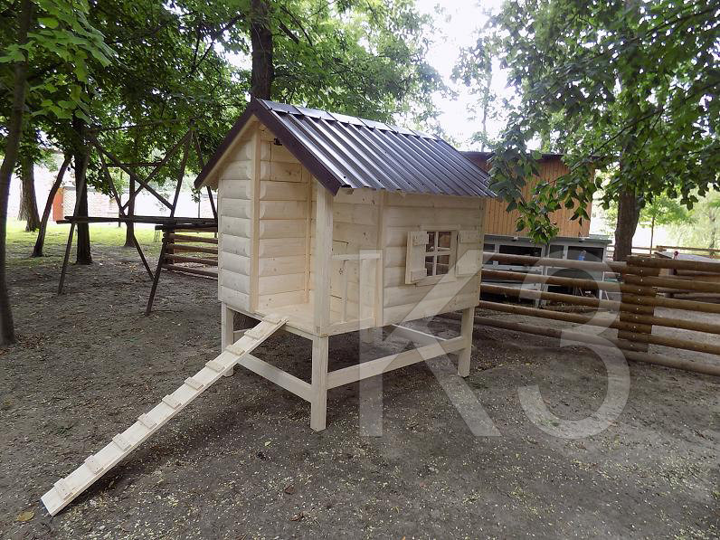Uvedený zrubový disponuje okrem nenapodobiteľného dizajnu odlišné elektronické ovládanie dvierok . Zariadenie funguje na sieťové napätie 220V, ktoré sa transformuje na 12V. Zariadenie využíva najmodernejšie výdobytky techniky Motor servopohonu a smer otvárania dvierok je ovládaný tranzistorovým H mostíkom , základné verzie majú klasický týždenný programovateľný spinač , vyžšie verzie využívajú mikropočítačovej dosky so snímačmi teploty spojených spolu s ventiláciou a automatickým dávkovaním krmiva .Kurín je z obvodovej steny komplet vybrúsený. Podlaha kurína je pokrytá pozinkovaným plechom. Strecha je z červeného trapézového plechu, vzor T18 o hrúbke 0,5mm. Zo zadu je otváracia stena na čistenie kurína viď video . Jedná o špičkový seriovo vyrábaný výrobok doposiaľ na slovensku ani EU neprezentovaný. Elektronika obsahuje programovací modul, PWM regulátor motora. Zariadenie je možné napájať z 12V autobaterie. Rozmer kurína je 175cm x135cm , je vhodný pre 8 až 12 sliepok , z bočnej strany je integrované znáškové dvojhniezdo.